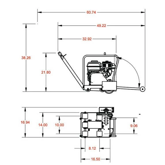 The CC148HXL-EE6 saw uses a 4.8 HP Honda gas engine rated at 3600 RPM. Diamond Product saws utlize a skid plate guard