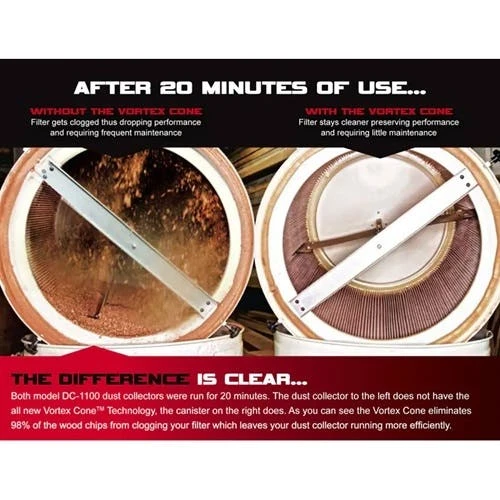 - Vortex Cone improves chip separation and collector bag packing efficiency.