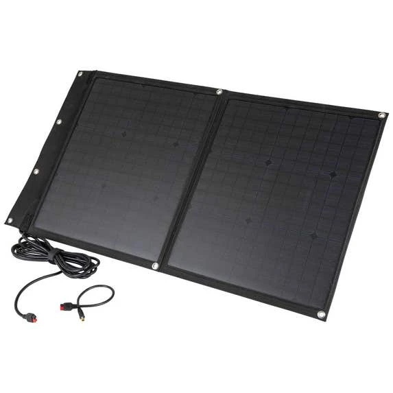 - 60-watt foldable solar panel capable of charging power banks, portable batteries and other devices using USB, Anderson Powerpole (APP), or 8mm DC connectors.