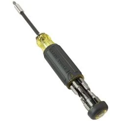 Klein Tools’ Adjustable Length Screwdrivers function both as multi-bit screwdrivers and impact driver attachments. With these screwdrivers, there is no need to run back to your tool bag. Industrial-strength bits are conveniently housed in the handle. Simply adjust the length of the blades to allow for easier access or remove to use with an impact driver. Powerful rare earth magnets secure bits and fasteners while the Cushion-Grip handle and spin cap provide outstanding comfort and control.